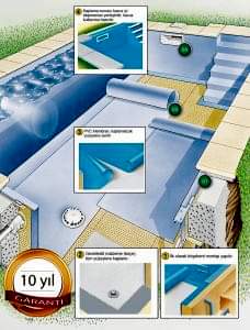 Havuz CEFIL, iki kat PVC ve bir sıcak eritme işlemi ile birbirine yapışmış bir polyester tel içeren takviyeli PVC astar olup, örgü iki katın ortasına yerleştirilmiştir. Bu polyester örgü, PVC’nin esnekliğini etkilemeden, uzun süreli istikrar ve gözyaşı direnci sağlar. Bu esnek ve kullanılabilir set 1,5 mm kalınlığa sahiptir.